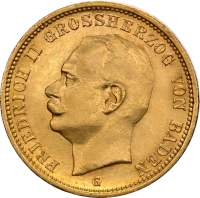 20 Marek Wielki Książe Fryderyk II Badeński Złota Moneta | 1907 - 1918