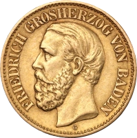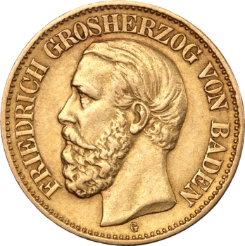 10 Marek Wielki Książe Fryderyk I Badeński Złota Moneta | 1872 - 1901