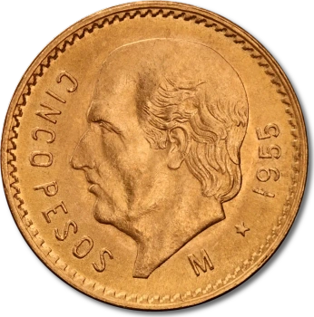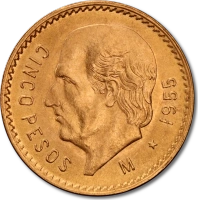 5 Peso Meksyk Hidalgo Złota Moneta | 1905 -1955