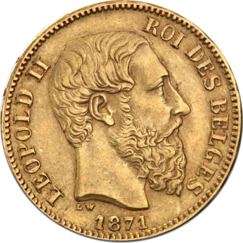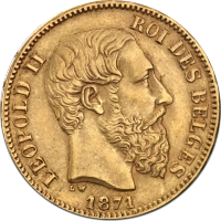 20 Franków Belgia Leopold II Złota Moneta | 1867 -1882
