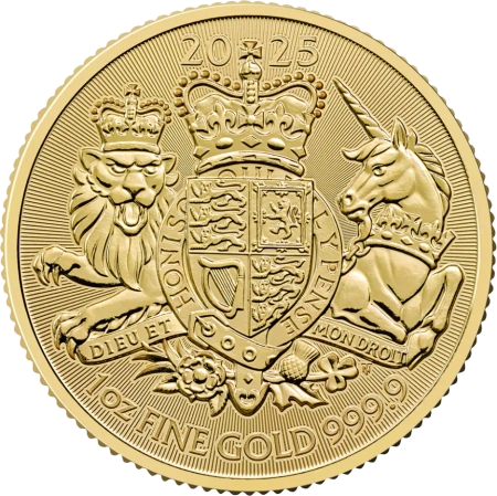 Zamów 1 oz The Royal Arms Złota Moneta | 2025 już dziś i dodaj do swojego portfela inwestycję, która łączy tradycję, prestiż i trwałą wartość.