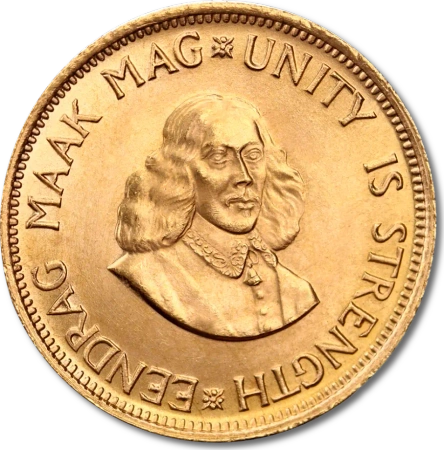 2 Randy RPA Złota Moneta | 1961–1983 to klasyczny południowoafrykański złoty kruszec, będący kontynuacją bogatej tradycji menniczej tego kraju. Wybita przez Rand Refinery i South African Mint, moneta zawiera 7,322 g złota próby 916.7/1000 (22 karaty), co czyni ją odpowiednikiem brytyjskiego suwerena pod względem zawartości czystego złota.