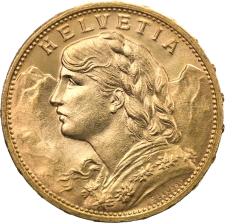 20 Franków Szwajcarskich Vreneli Złota Moneta | 1897 - 1949