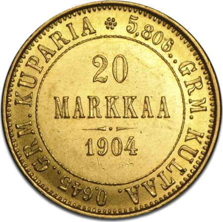 Zamów 20 Markkaa Finland | Gold | 1860-1913 od Lemoon Gold już dziś i dodaj do swojej kolekcji monetę, która łączy w sobie elegancję, historię i ponadczasową wartość złota.