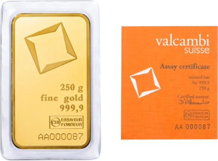 Zainwestuj w 250g Złota Sztabka | Valcambi | Bita już dziś!