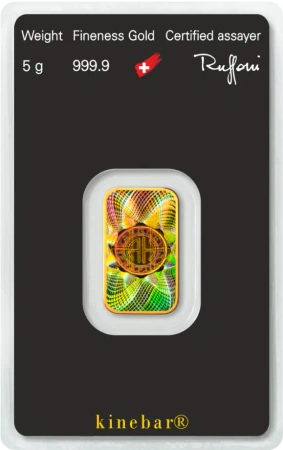 5g Sztabka złota | Argor-Heraeus | Kinebar to doskonałe połączenie szwajcarskiej precyzji, innowacyjnej technologii i najwyższej jakości złota inwestycyjnego. Wykonana z czystego kruszcu o próbie 999.9/1000, ta sztabka stanowi zarówno bezpieczną lokatę kapitału, jak i elegancki symbol trwałej wartości.