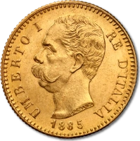 20 Lirów Włochy Umberto I Złota Moneta | 1879 - 1897