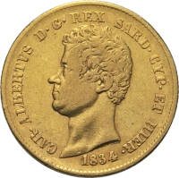20 Lirów Sardynia Charles Albert Złota Moneta | 1831 - 1849